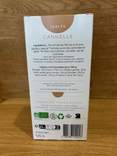 Délicieux sablés bio à la saveur authentique de la cannelle, biscuiterie familiale artisanale Drômoise Vanig & Délices